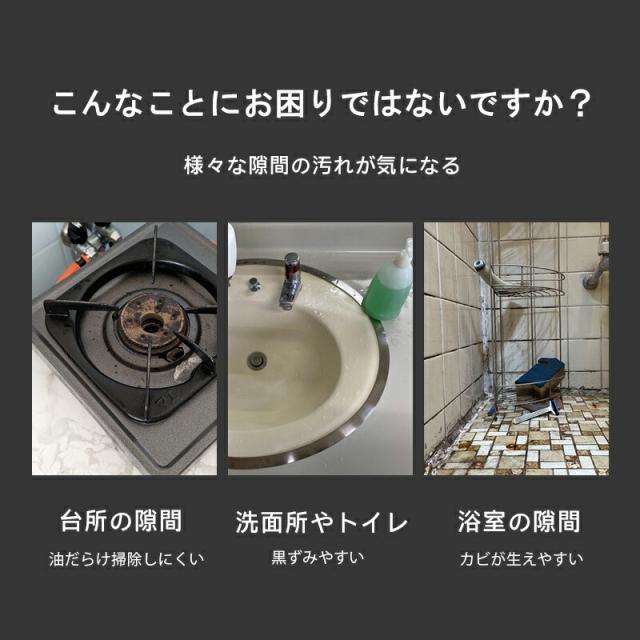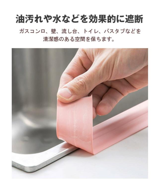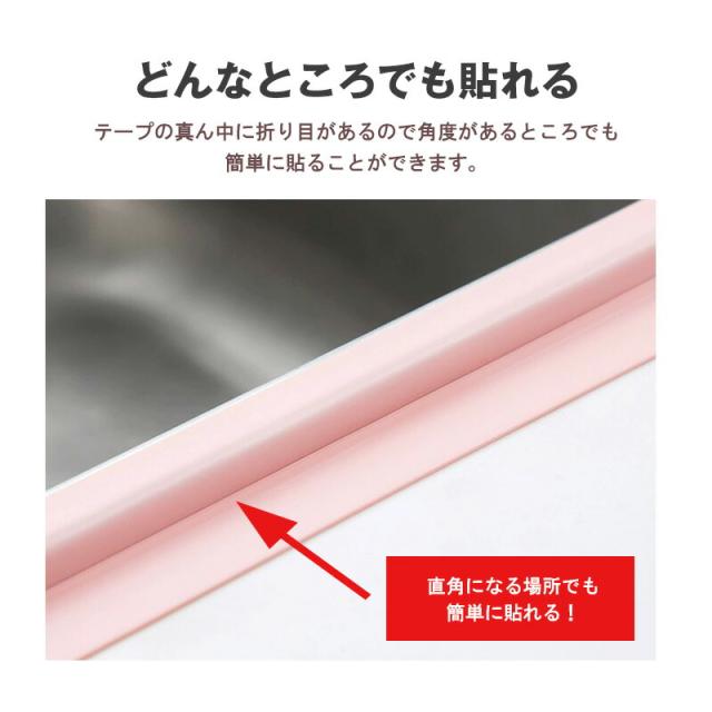 | キッチンの「カビ」の悩みを解決! 油汚れや水などを防ぐ! 洗面所・流し台・浴槽等、水回りの隙間などにあるカビや汚れを強力ブロックし、汚れのふき取りも簡単にできます。 テープの真ん中に折り目があるので、角度のある所でも簡単に貼ることができます。 |