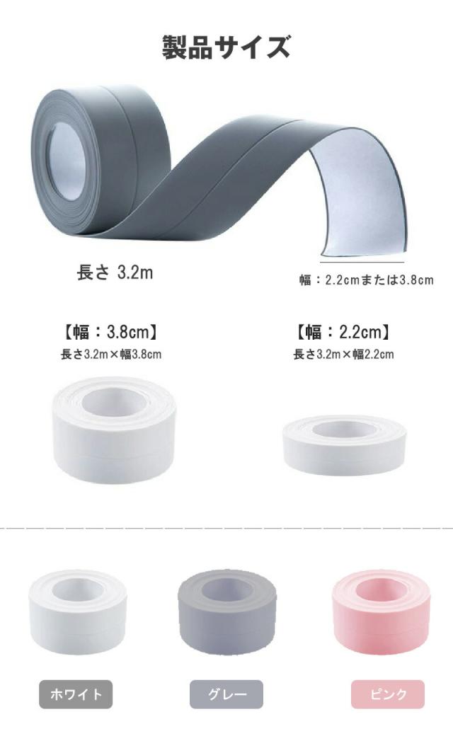 | 防水 防カビ テープ キッチン お風呂 浴室 台所 水回り バス シンク 隙間 汚れ 防止 予防 窓 玄関 日用品 DIY 雑貨 粘着テープ |