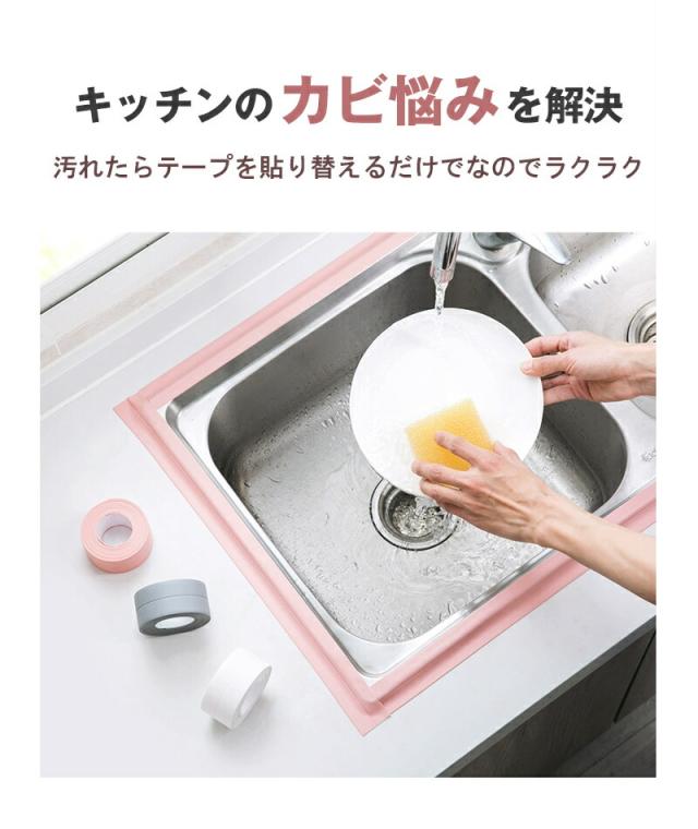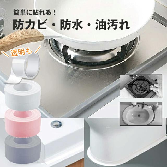 防水 防カビ テープ キッチン お風呂 浴室 台所 水回り バス シンク 隙間 汚れ 防止 予防 窓 玄関 日用品 DIY 雑貨 粘着テープ 送料無料