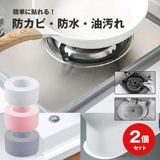 防水 防カビ テープ 2個セット キッチン お風呂 浴室 台所 水回り バス シンク 隙間 汚れ 防止 予防 窓 玄関 日用品 DIY 雑貨 粘着テープ 送料無料