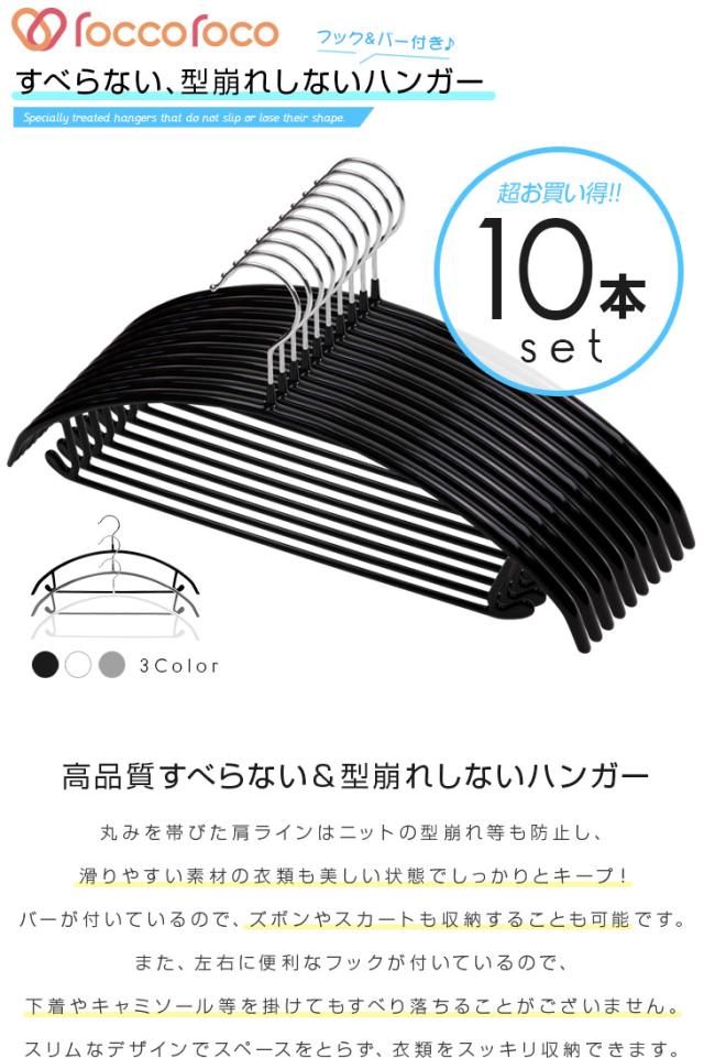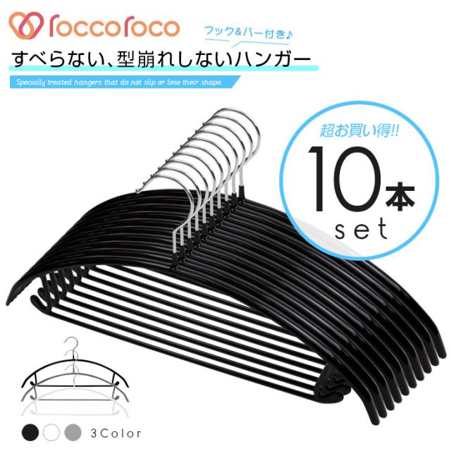 雑誌GOODA掲載!ROROPOCO(ロロポコ)すべらないハンガー!(フック&バー付き)10本セット!ハンガー すべらない 滑らない 跡がつかない 型崩れしない すべりにくい スベらない 洗濯ハンガー 衣類ハンガー ズボンハンガー スカートハンガー 洋服ハンガー