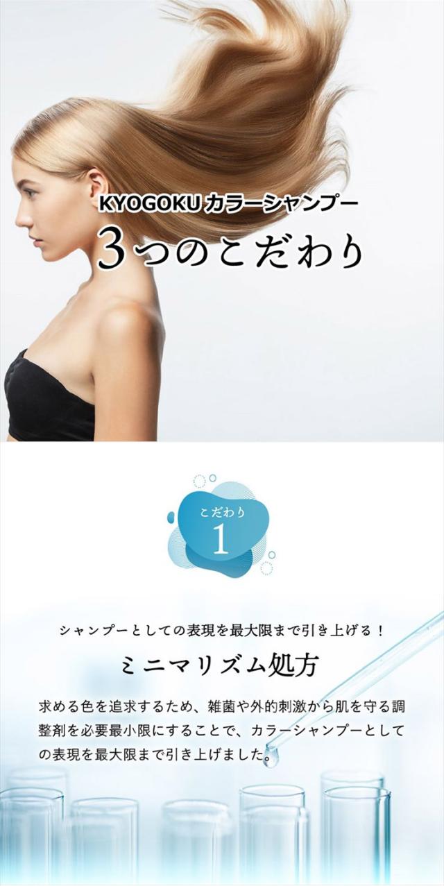 また同シリーズのKYOGOKUブルーパープルシャンプー BPを使用していただけますと色味をもっと楽しむことができます。