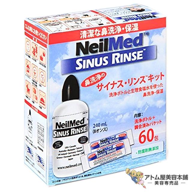 サイナス・リンス キット(本体+60包)ボトル付 鼻うがい 鼻洗浄 鼻づまり 花粉症 アレルギー鼻炎 風邪予防 ウイルス対策 上咽頭洗浄 生理食塩水 鼻うがい器 鼻ケア 鼻腔ケア 黄砂 対策 予防 ケア ニールメッド Sinus Rinse 一般医療機器 SRK-60