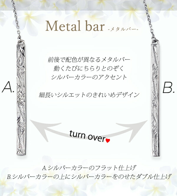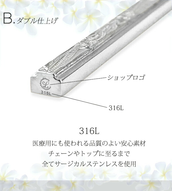 | コメント | 留め具のないロングチェーンのネックレス。チェーンがメインのラリエットはシンプルでおしゃれ。ぐんと垢抜けた雰囲気を演出できます。両端にはメタルバーとアクセントにもなる選べるモチーフ(ハート・サークル・スクエア)。縦ラインを強調することができるため、スタイルアップ効果も期待できちゃいます◎アレンジの幅が広がるラリエットで普段のコーディネートを楽しんでくださいね。 今まで金属アレルギーでハワイアンジュエリーが着けれなかった方にオススメ!! サージカルステンレス使用のハワイアンジュエリー。 医療用に使われているサージカルステンレスは肌に優しく、金属アレルギーでアクセサリーをつけられない方にも安心です。シルバーアクセサリーより軽くて丈夫で変色しにくい素材です。お手入れも、柔らかい布などでサッと拭くだけいいので、とっても簡単です。 注意:お風呂や温泉で変色しにくいですが、外していただく事をおススメいたします。また、天然石や宝石・シェルがついている商品は水につけると石取れやクスミの原因になりますので水回りはできるだけ避けるようお願いします。 ※サージカルステンレス製のチェーン付です。 |