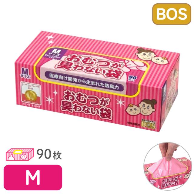 驚異の防臭袋 BOS ボス おむつが臭わない袋 ベビー用 赤ちゃん用 うんち おむつ 袋 消臭袋 処理袋 トイレ袋 うんち袋 エチケット 車 散歩 お出かけ マナー オムツ ゴミ袋 におい対策 生ごみ 介護 マチ付 Mサイズ 90枚入 1個