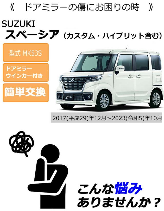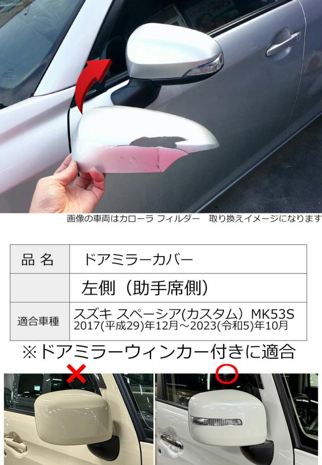 ドアミラーカバー左 スズキ スペーシア MK53S ドアミラーウインカー付き車 左側(助手席側) 傷・割れ・はげた時にDIYで交換にチャレンジ SSL54