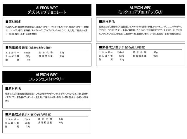 ※アルプロンでは、お客様に安定して商品をお届けするために 予告なく使用原材料を一部変更する場合がございます。 そのため、多少風味が変わる場合がございますが、 品質に問題はございませんのでご安心くださいませ。 原材料変更に伴い、栄養成分が変わる場合は 商品ページ栄養成分表、商品パッケージ裏面の栄養成分表も随時変更して参りますが ご注文のタイミングによって、栄養成分表が異なる場合がございます。 その際はお手元の商品パッケージ裏面の栄養成分表が 正確な数値となりますのでご確認頂きますようお願い申し上げます。 みなさまにより美味しい商品をお届け出来るよう アルプロン一同、日々努めてまいりますので 何卒ご理解賜りますようお願い申し上げます。