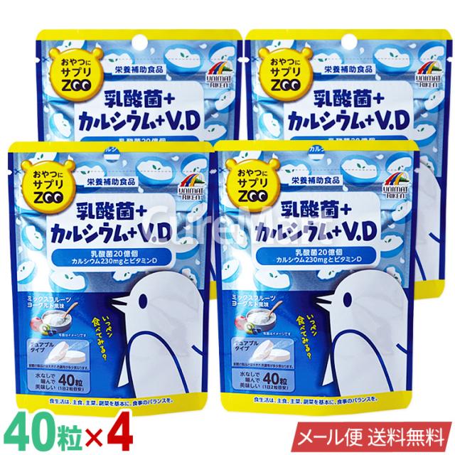 おやつにサプリ ZOO 乳酸菌+カルシウム+V.D 40粒◆4袋セット ユニマットリケン メール便 送料無料 チュアブルタイプ カルシウム ビタミンD サプリメント zoo ズー