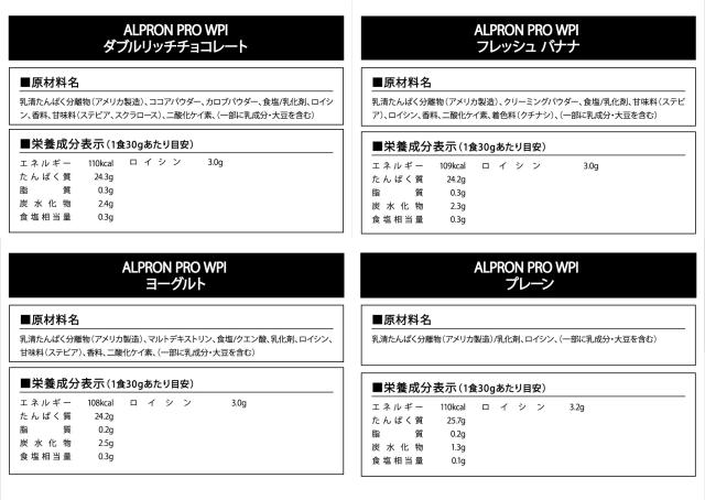 ※アルプロンでは、お客様に安定して商品をお届けするために 予告なく使用原材料を一部変更する場合がございます。 そのため、多少風味が変わる場合がございますが、 品質に問題はございませんのでご安心くださいませ。 原材料変更に伴い、栄養成分が変わる場合は 商品ページ栄養成分表、商品パッケージ裏面の栄養成分表も随時変更して参りますが ご注文のタイミングによって、栄養成分表が異なる場合がございます。 その際はお手元の商品パッケージ裏面の栄養成分表が 正確な数値となりますのでご確認頂きますようお願い申し上げます。 みなさまにより美味しい商品をお届け出来るよう アルプロン一同、日々努めてまいりますので 何卒ご理解賜りますようお願い申し上げます。