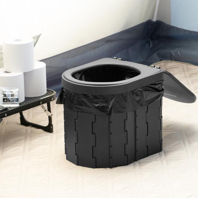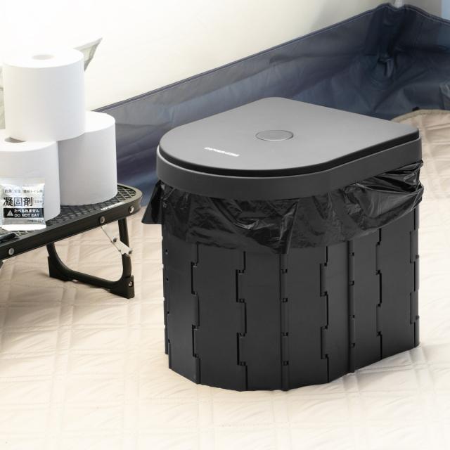 簡易トイレ ポータブルトイレ D型 折りたたみ コンパクト ゴミ袋 凝固剤 収納袋付き ( 携帯トイレ 災害用トイレ 非常用トイレ 防災グッズ 災害 防災 災害時 持ち運び 折り畳み 寝室 簡易 緊急時 黒 ブラック おしゃれ )