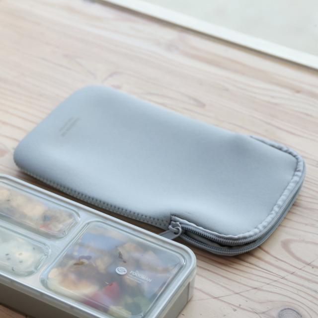 伸縮性の高い素材なので、お弁当箱にぴったりフィットします。お箸も一緒に、スッキリとまとめてバッグに入れられます。