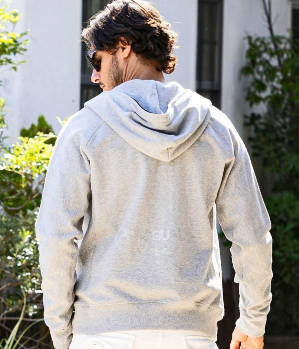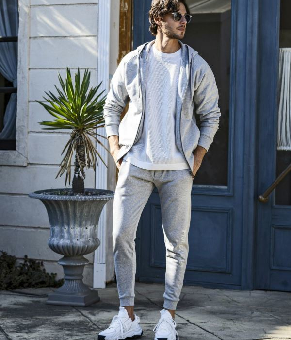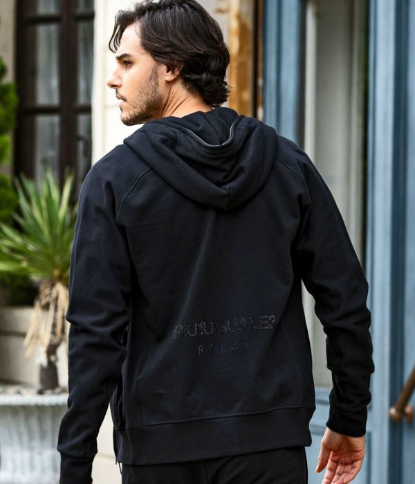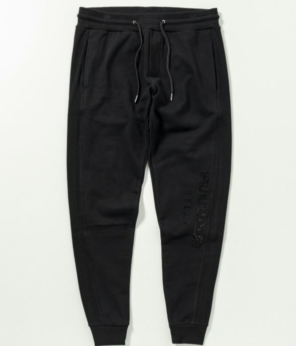 パーカーのバック、パンツの左サイドには身頃と同色系のラインストーンロゴを配置し、動くたびにキラリと上品な輝くを放ちます。