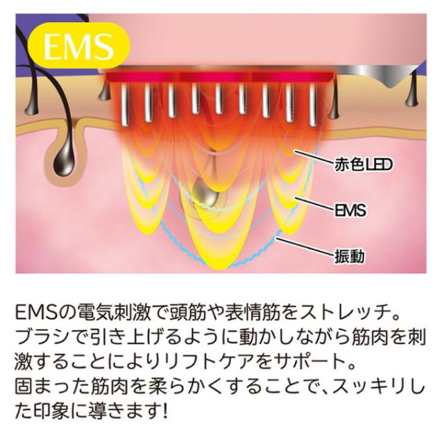 日々の日常生活で固くなりがちな頭皮、頭筋を25本のブラシ型電極からのEMS&RFで刺激します。