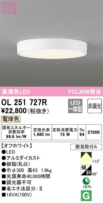 オーデリック OL251727R 小型シーリングライト LED一体型 電球色 非調光 ODELIC