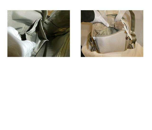 リュックベルト裏とリュックの背面には、蒸れにくいエアメッシュ素材を使用。