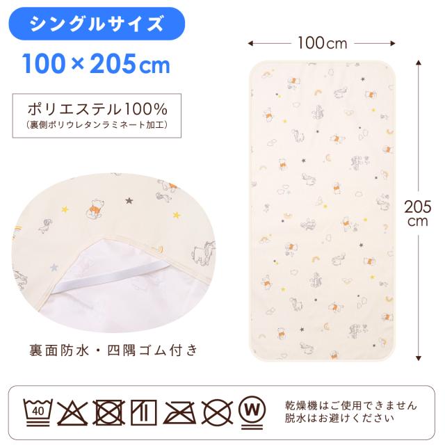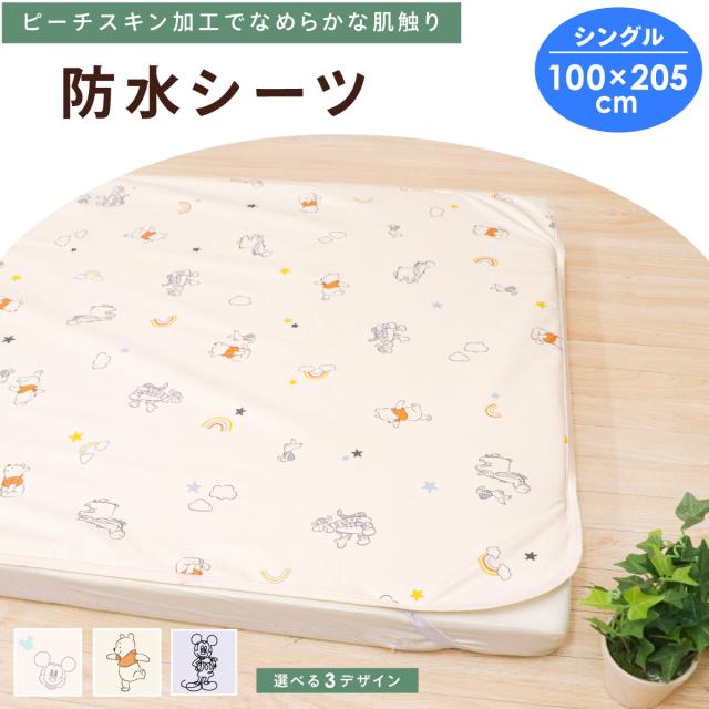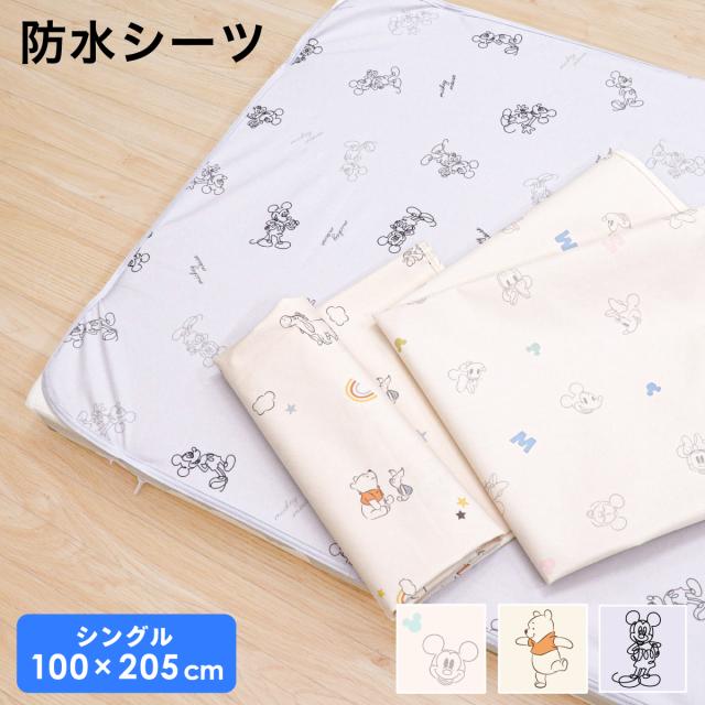 ディズニー 防水シーツ 100×205cm シングルサイズ プーさん ミッキー ミニー 吸水加工 四隅ゴム クリーム アイボリー グレー un doudou メール便発送(ポスト投函) NP