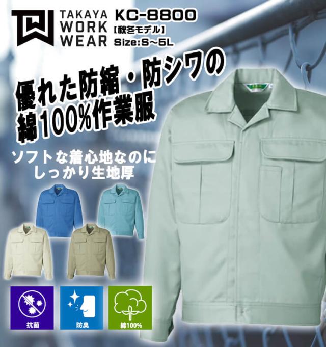 タカヤ商事 タカヤワークウェア 8803シリーズ ジャンパー KC-8800 秋冬 サイズS〜LL 綿100% 抗菌防臭 防シワ素材 作業服