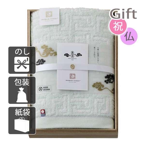 お歳暮 お年賀 今治謹製 雲母唐長(KIRA KARACHO) 唐長文様コンパクトバスタオル(木箱入) グリーン