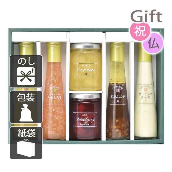 内容/ジャム(ラ・フランス・いちご)(各145g)・ドレッシング(フレンチガーリック・ノンオイル大根と人参・和風しょうゆ・ガーリックチーズ)(各122ml)×各1