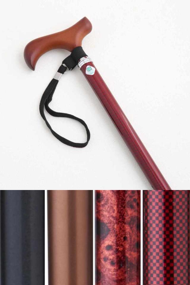 安定感のある太いステッキです。シックな木目、綺麗な市松模様、シンプルな無地、お好きなカラー・デザインをお選びいただけます。