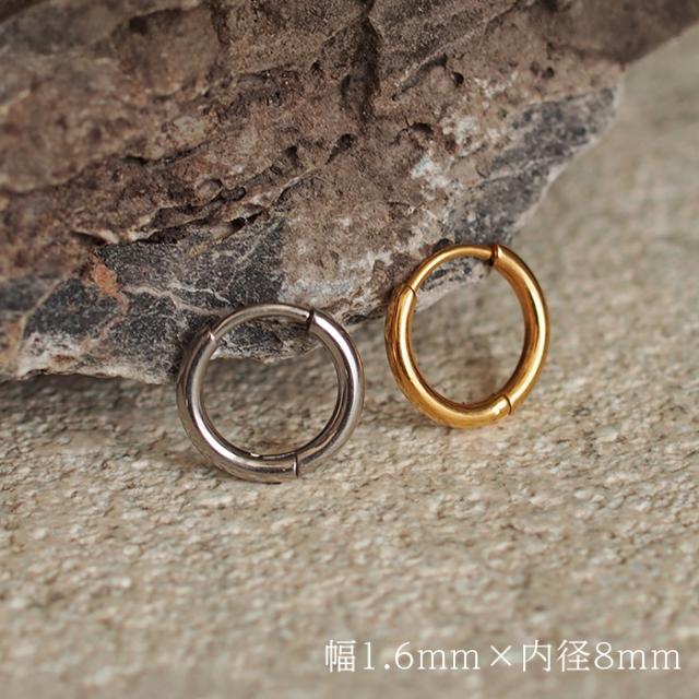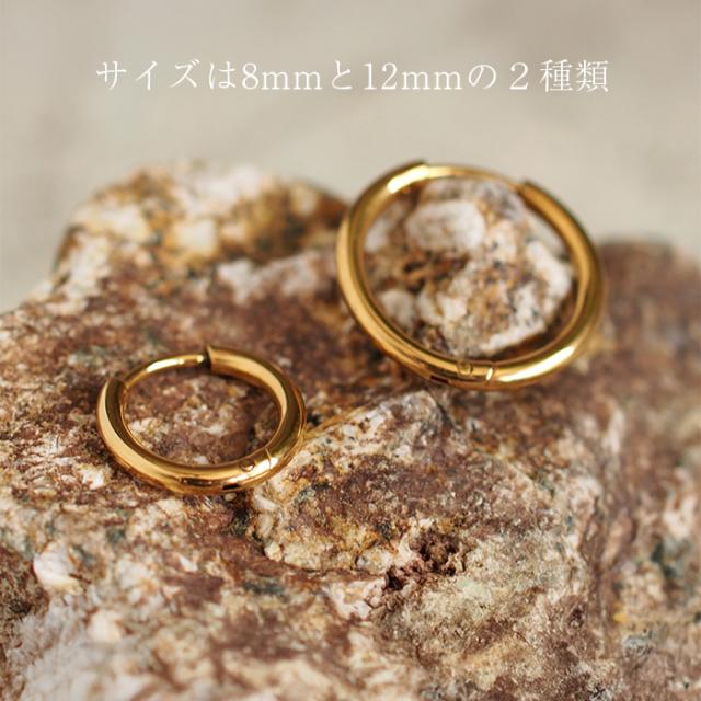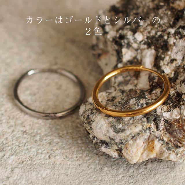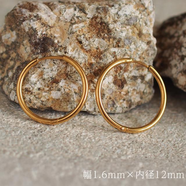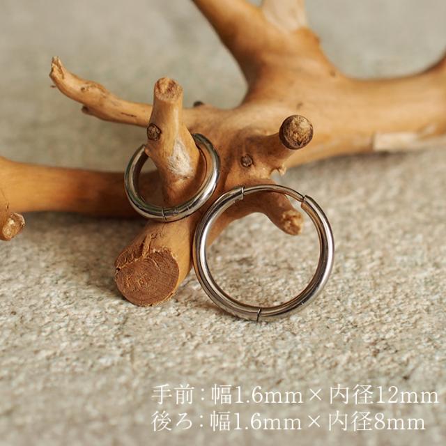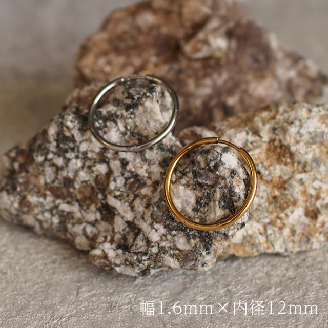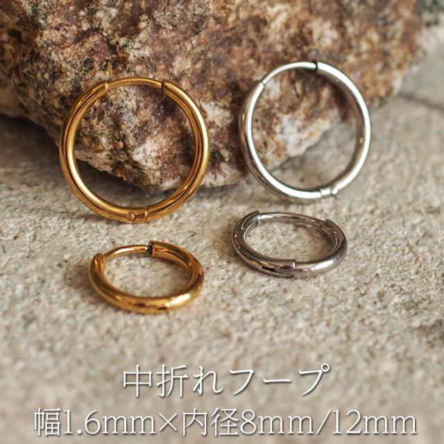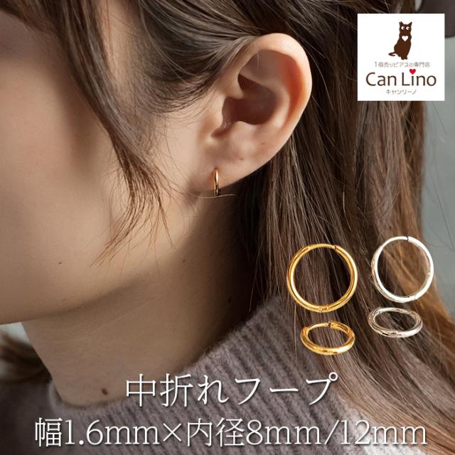 フープピアス つけっぱなし 金属アレルギー対応 ステンレス 幅1.6mm × 内径 8mm 12mm 中折れ 大人 上品 通勤 オフィス シンプル