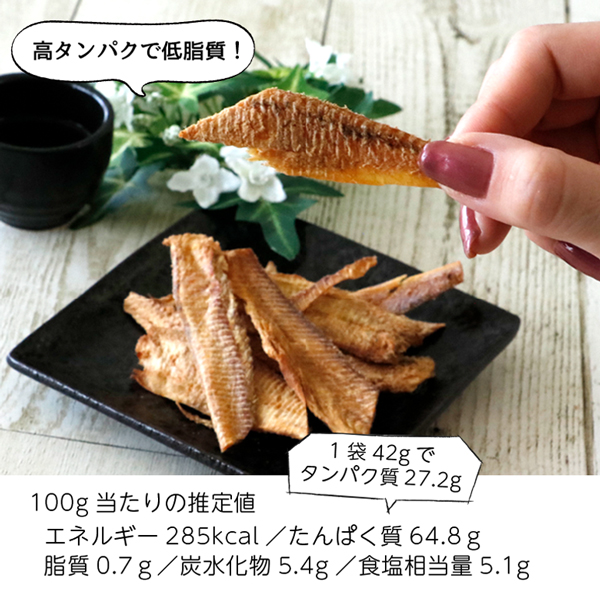 栄養成分表示(100g当たり) :エネルギー 285kcal たんぱく質 64.8g 脂質 0.7g 炭水化物 5.4g 食塩相当量 5.1g