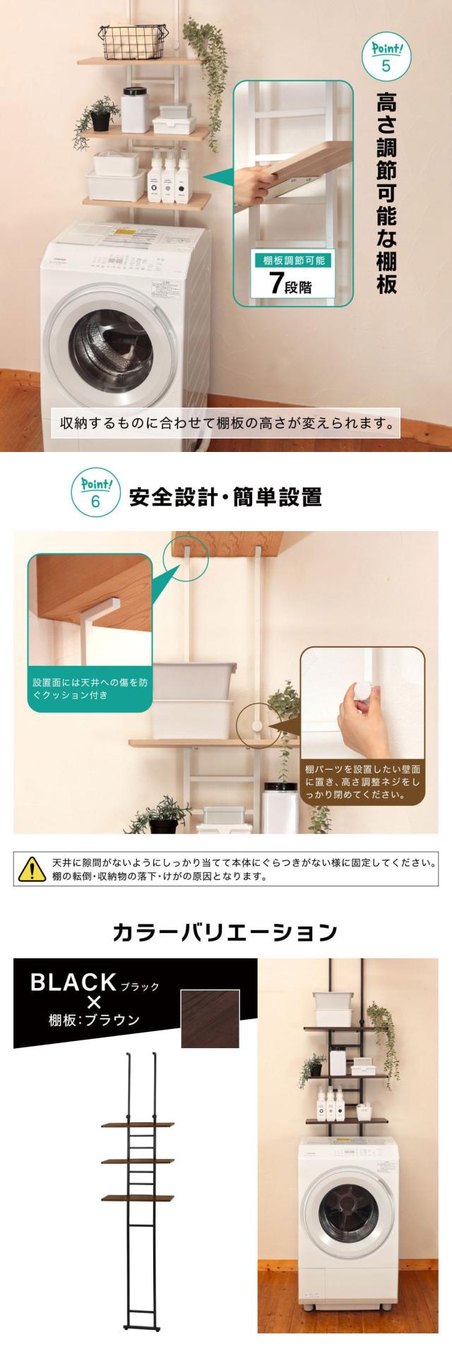 - 本来は洗濯機の上用の棚ですが、我が家はゴミ箱上のデッドスペースに活用させて頂いております。組み立ても簡単でスムーズに完成しました。納品も梱包も丁寧かつ迅速で大満足です。ありがとうございました。