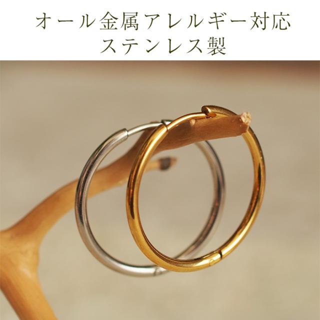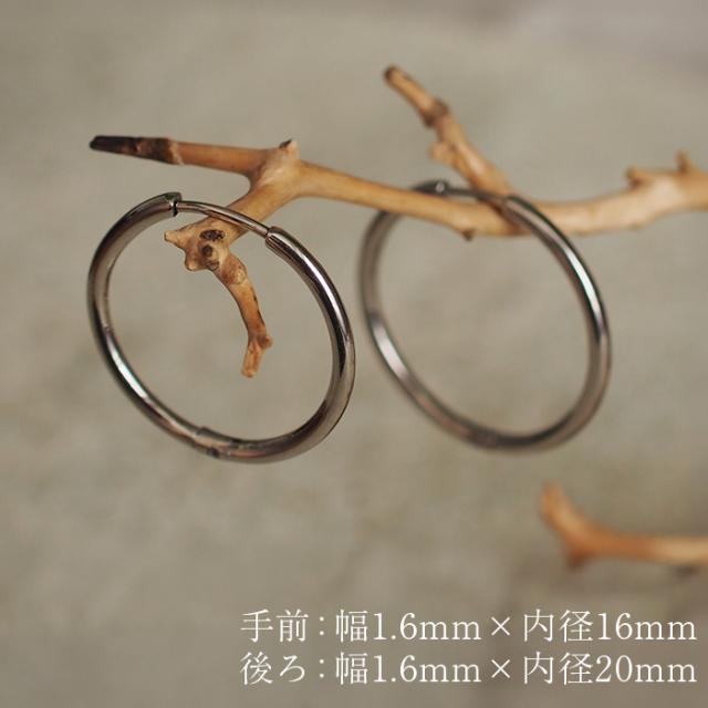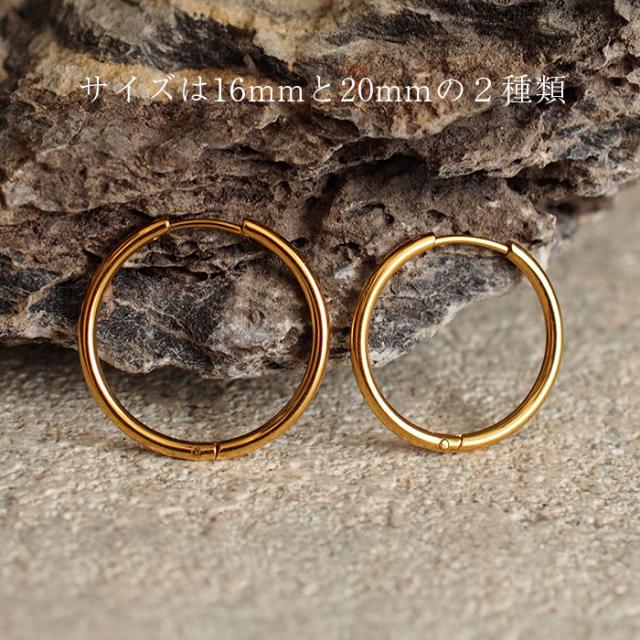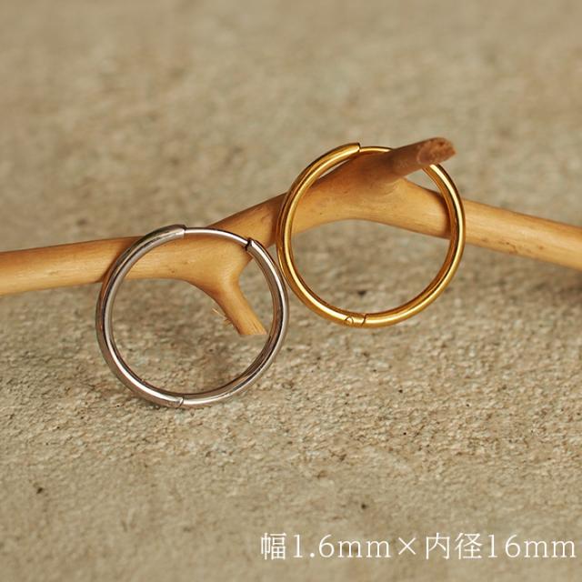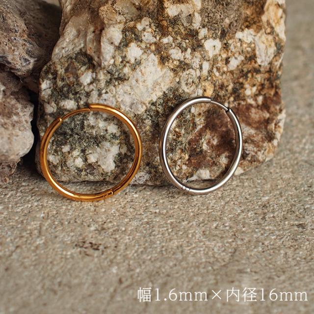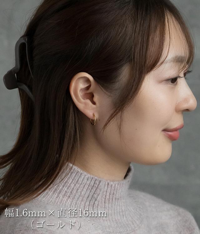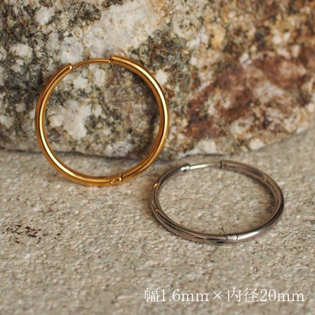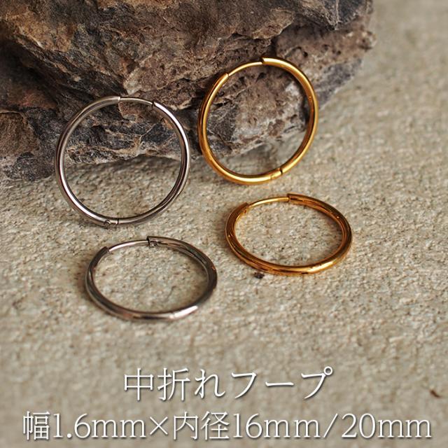 フープピアス つけっぱなし 大ぶり 金属アレルギー ステンレス 幅1.6mm × 内径 16mm 20mm 中折れ 大人 上品 通勤 オフィス シンプル