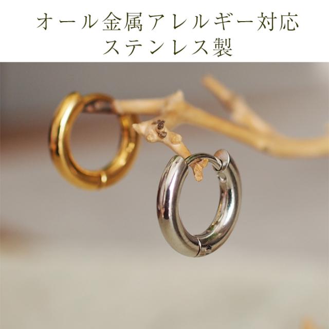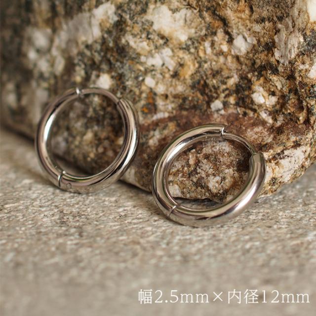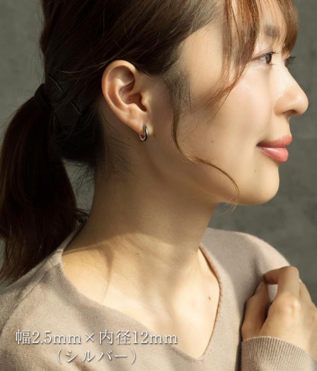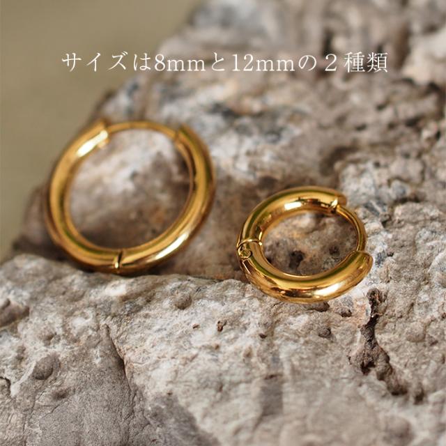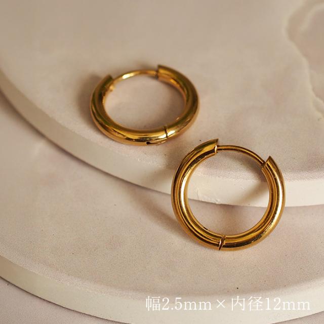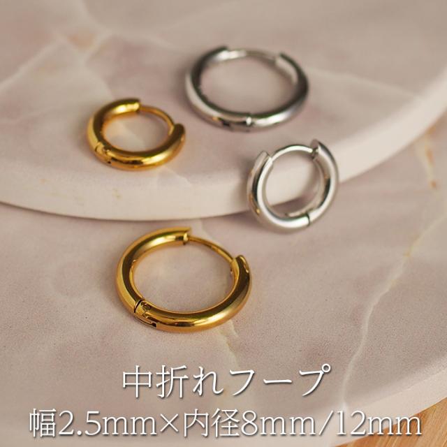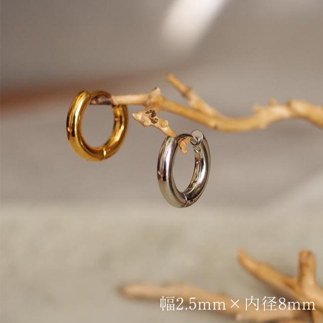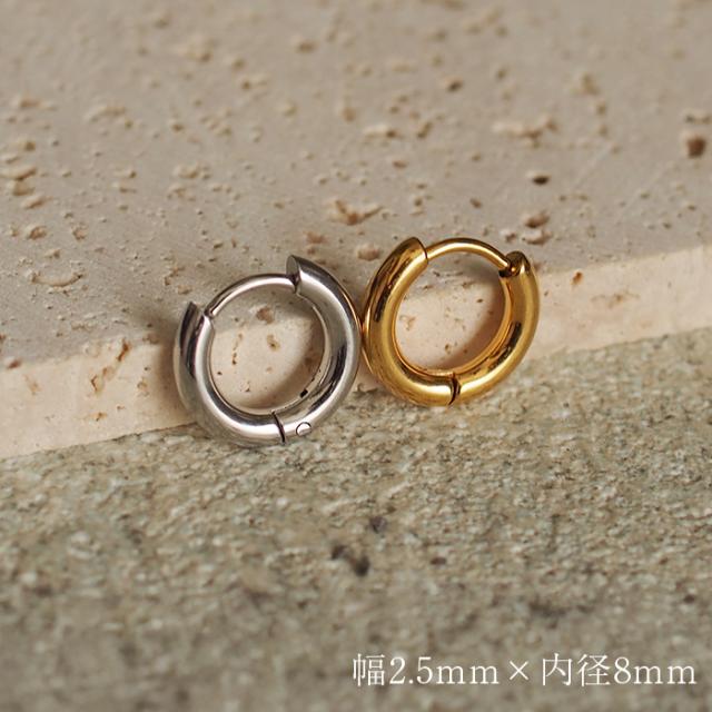 フープ ピアス つけっぱなし 小さめ ステンレス アレルギー対応 幅2.5mm × 内径 8mm 12mm 太め 中折れ 大人 上品 通勤 オフィス シンプル