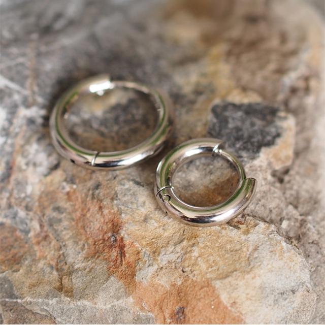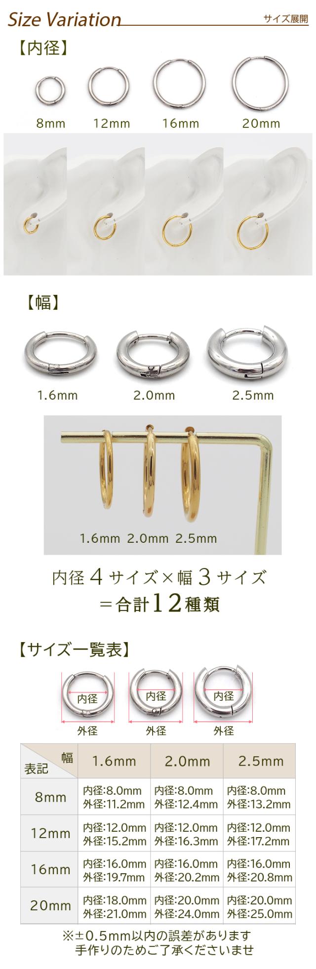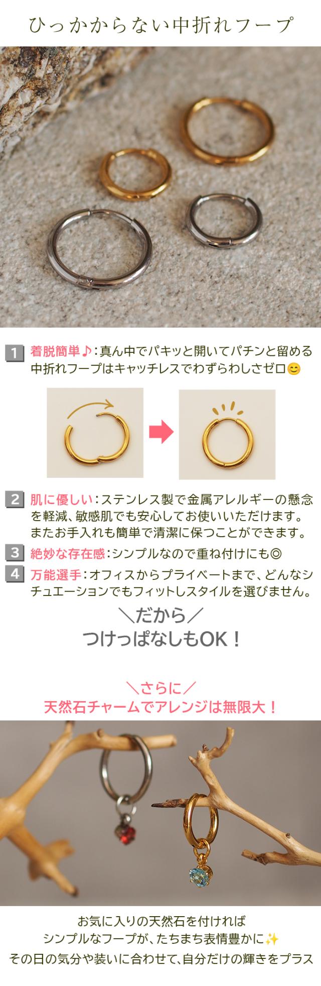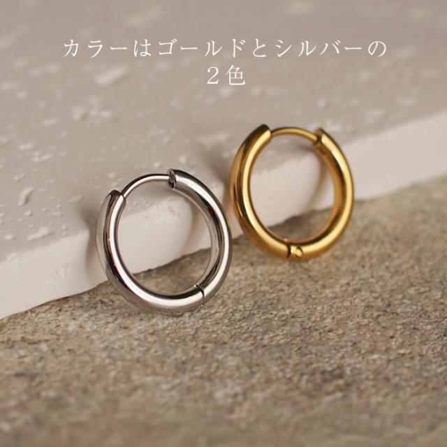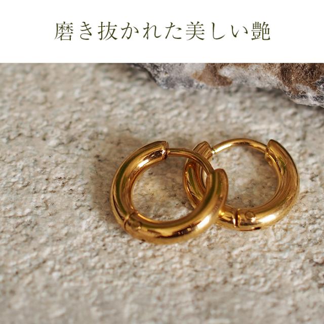 フープ ピアス つけっぱなし 小さめ ステンレス アレルギー対応 幅2.5mm × 内径 8mm 12mm 太め 中折れ 大人 上品 通勤 オフィス シンプル