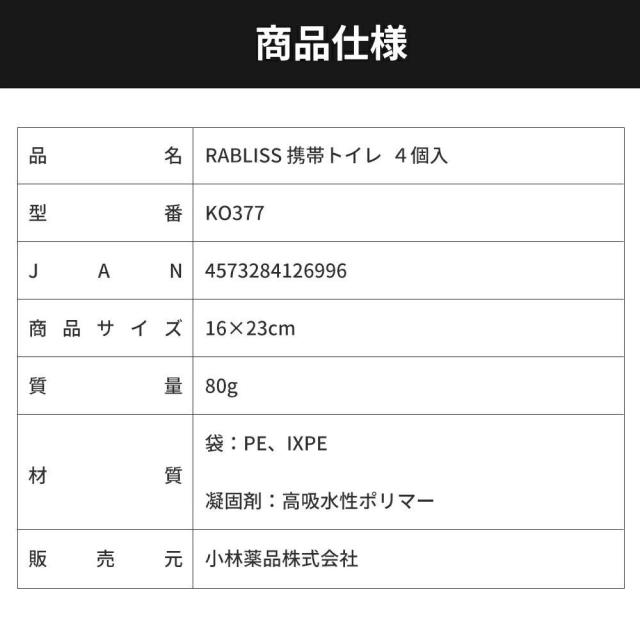 | 商品名 | RABLISS 携帯トイレ(4個入) |