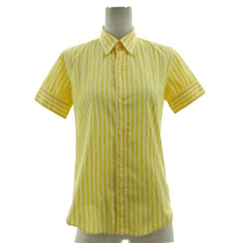 【中古】RALPH LAUREN SPORT シャツ SLIM FIT ボタンダウン ポニー刺繍 半袖 コットン ストライプ 黄色 白 9