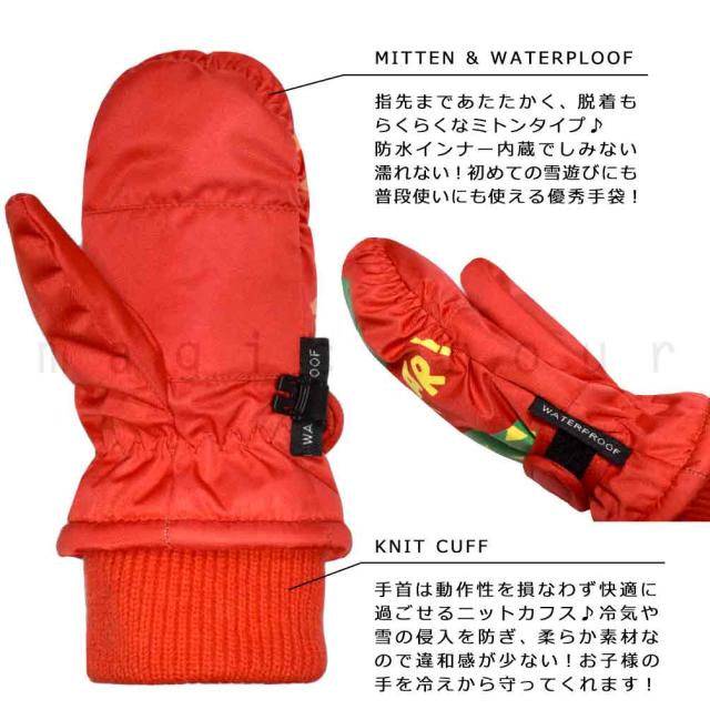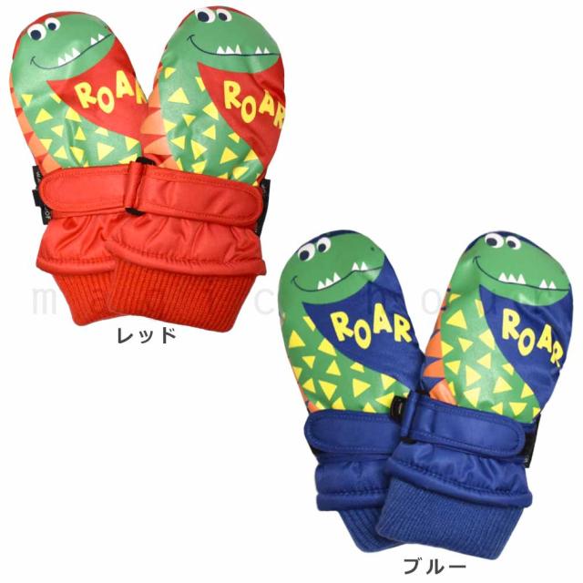 キッズ スキー 手袋 防水 雪遊び 男の子 恐竜 子供 ミトン スノー グローブ ボーイズ ガールズ ジュニア 濡れない お洒落 手ぶくろ 3歳 4歳 5歳 青 赤