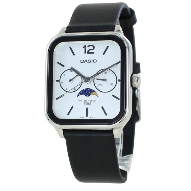 海外限定モデル カシオ スタンダード チプカシ ムーンフェイス 腕時計 手表 メンズ レディース 収納ケース付き ブラック 革ベルト 誕生日プレゼント 中学生 高校生 大学生 彼氏 彼女 父 母 誕生日プレゼント 記念日 ギフト 海外モデル