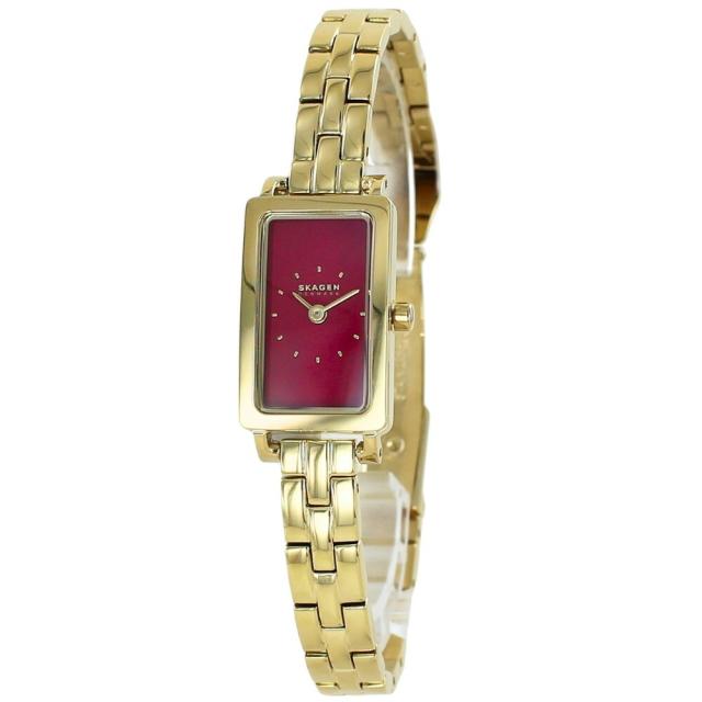 スカーゲン 四角い 腕時計 レディース ブランド 赤 文字盤 レッド ゴールド 長方形 かわいい おしゃれ シンプル レディース腕時計 ブランド腕時計 女性用 仕事用 クオーツ ウォッチ お礼 贈り物 ギフト 女友達 彼女 母 妻 プレゼント 誕生日プレゼント 成人 卒業 入学