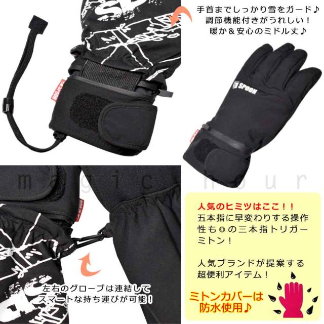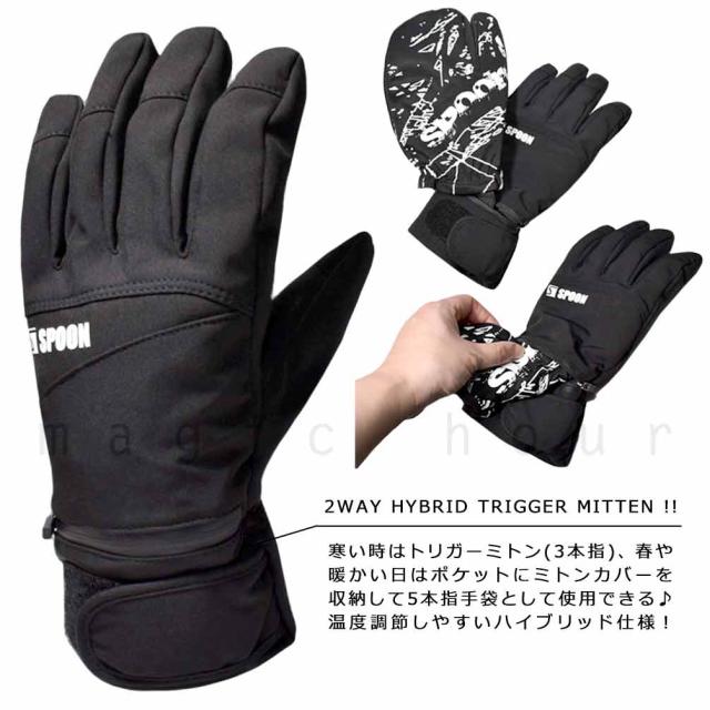 送料無料 2way!! 3本指 ミトンになる スキー スノーボード グローブ メンズ レディース スノボ 防水 スノーグローブ ブランド 手袋 SPOON スプーン トリガーミトン お洒落