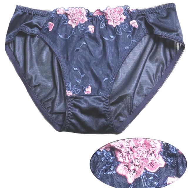 ショーツ レディース LLサイズ ネイビー 花柄刺繍 フラワー レース インナー 女性用 レディス スタイルアップ