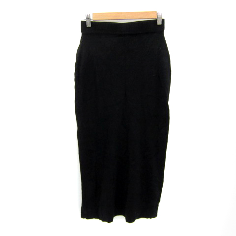 【中古】リエディ リブニットスカート タイトスカート ロング丈 マキシ丈 無地 スリット M 黒 ブラック レディース