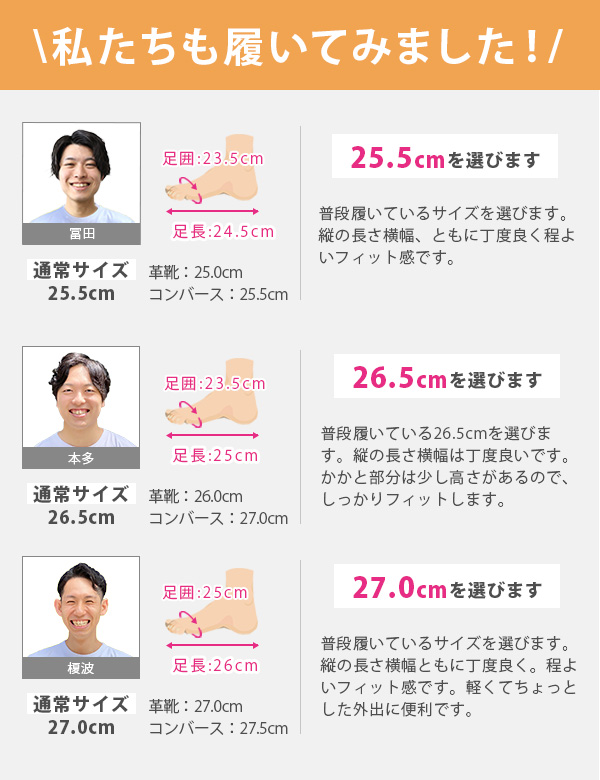 取り扱いサイズ:25cm 25.5cm 26cm 26.5cm 27cm