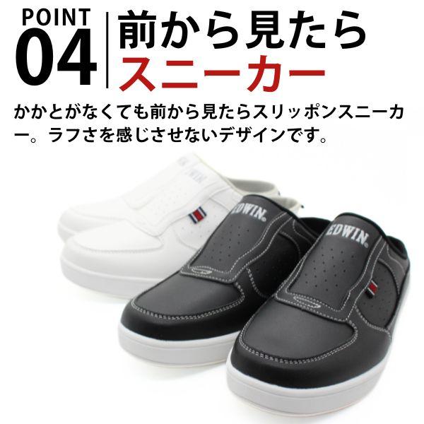 エドウィン スリッポン メンズ サンダル スニーカー 靴 サボサンダル クロッグ 黒 白 ブラック ホワイト 軽量 軽い 疲れない 通気性 蒸れない かっこいい おしゃれ 仕事履き 室内 かかとなし 人気 ブランド 滑らない 防滑 EDWIN EDW-7060