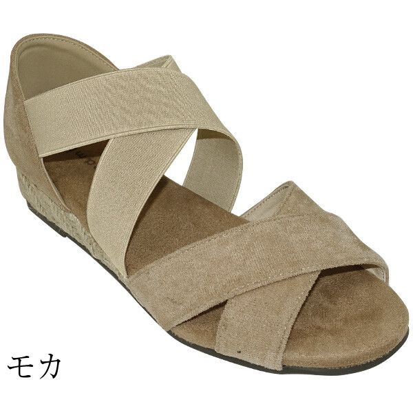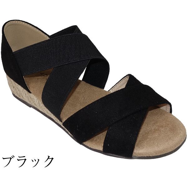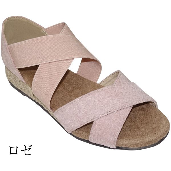 サンダル レディースシューズ レディースファッション 靴 夏定番サンダル 甲ゴムWクロスベルト ローウェッジサンダル 履き心地抜群 【送料無料】