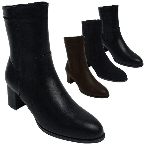 ブーツ レディースシューズ レディースファッション 靴 秋冬ミドルブーツ ポインテッドトゥ シンプル 太ヒールブーツ ミドル丈 ローヒル 【送料無料】