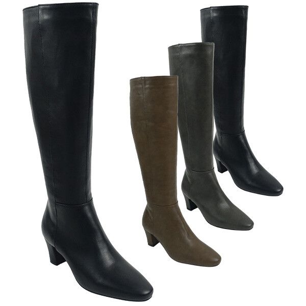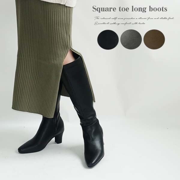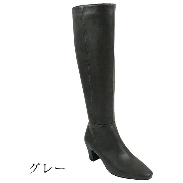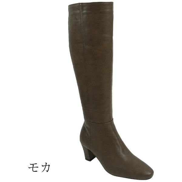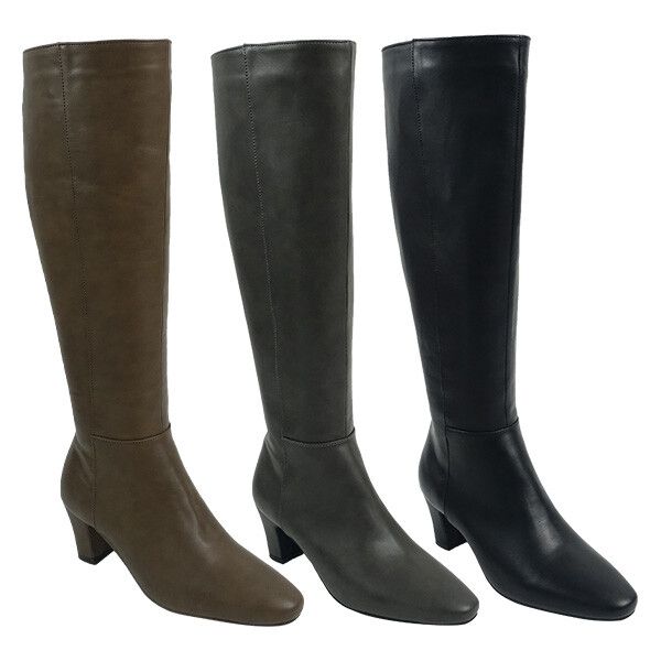ブーツ レディースシューズ レディースファッション 靴 秋冬 ロングブーツ スクエアトゥ ローヒール ニーハイ ふくらはぎやや太め 【送料無料】