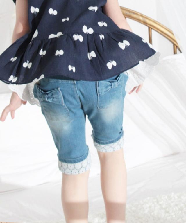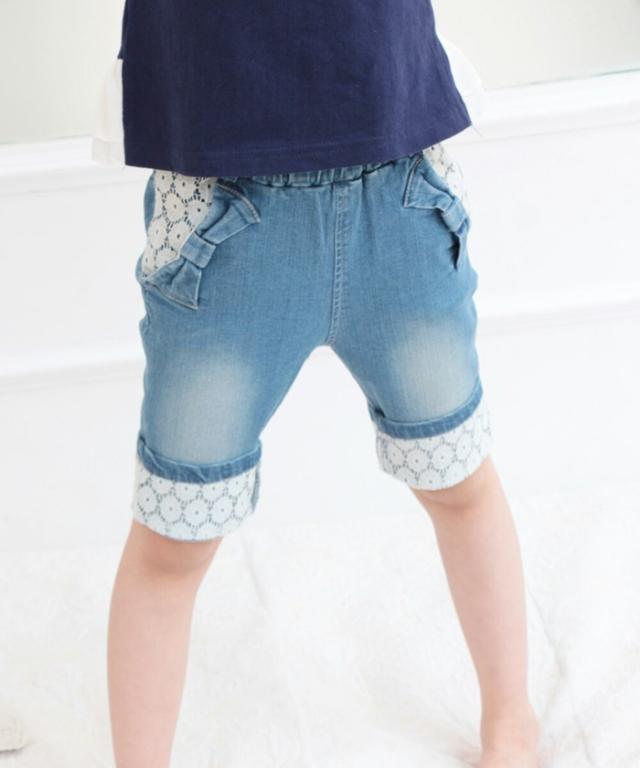 ショートパンツ キッズ 女の子 通販 デニムパンツ 10002605 デニムショートパンツ ハーフパンツ デニム パンツ 短パン リボン レース おしゃれ かわいい オシャレ 可愛い ナチュラル ガーリー ボトムス 子ども服 子供服 キッズファッション