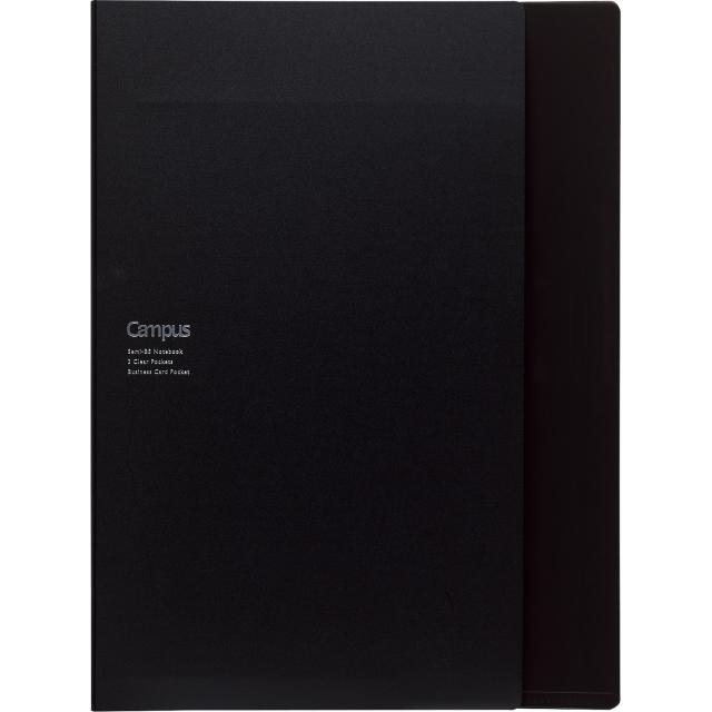 商品仕様 ●カラー/ブラック(中の書類が見えにくい不透明カバー) ●ノートサイズ/6号(セミB5) ●ノート罫線/中横罫B罫(ドット入り) ●ノート枚数/50枚 ●材質/中紙:上質紙、カバー/PP ●1ポケットへの適正収容枚数/10枚 ●替ノート品番/ノ-5BT-DB ※ノートはキャンパスノート(ドット入り罫線)が1冊セットされています。 ※セミB5サイズのノートをセットして使うことができます。 ※A4書類を折らずに収容できます。