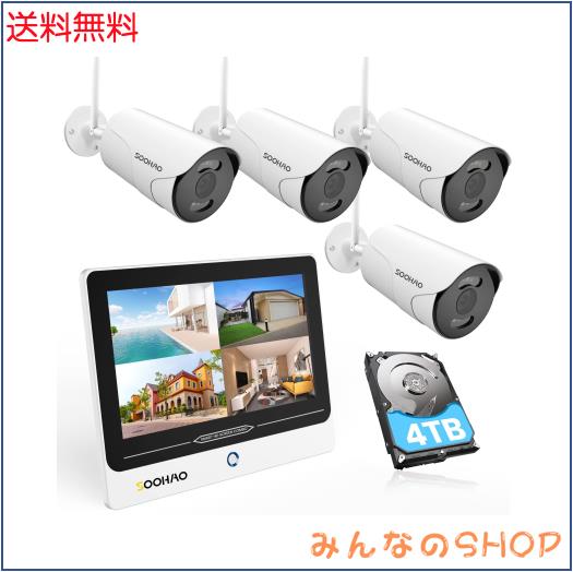SOOHAO ワイヤレス防犯カメラセット モニター付き WIFI 監視カメラ 4台セット