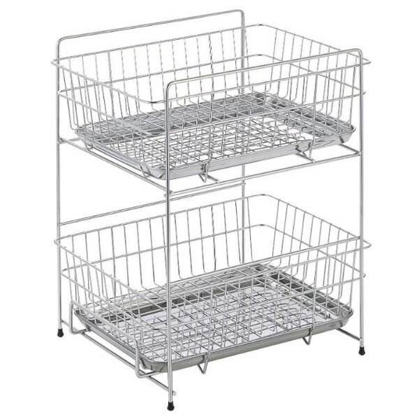 工房アイザワ ながしこもの 二段式水切ラック 受皿付 70015 水切り キッチン収納 日本製 新潟 燕市 シンプル
