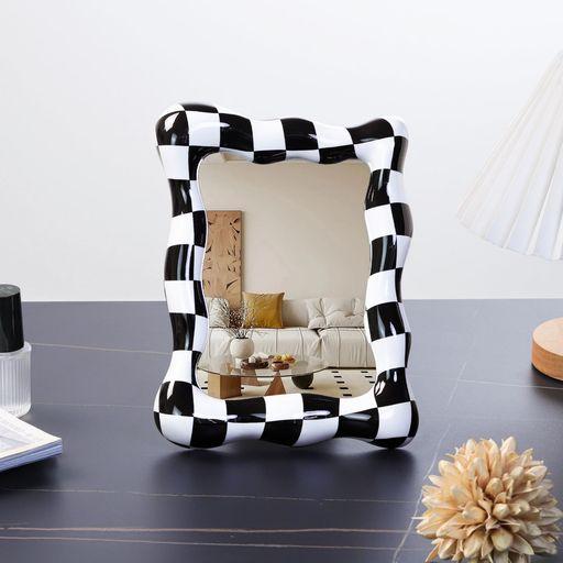 BROWGROW 卓上鏡 卓上ミラー 化粧鏡 スタンドミラー メイクミラー 卓上 置き鏡 360度回転 おしゃれ(矩形 黒白格子)
