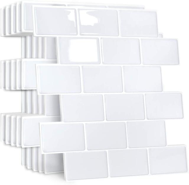 APSOONSELL 立体 貼るタイルボード 【5枚セット】 耐熱 防水 タイルシール タイルシート 立体 白 キッチン 洗面所 浴室 3D 壁紙 はがせる