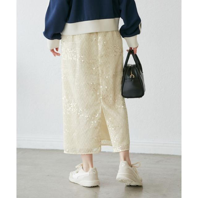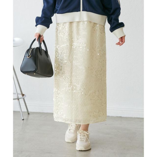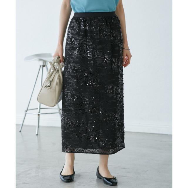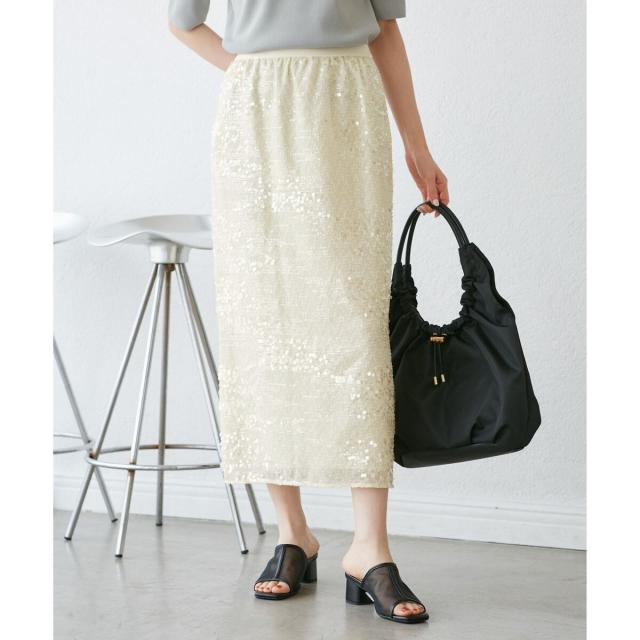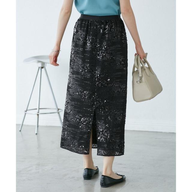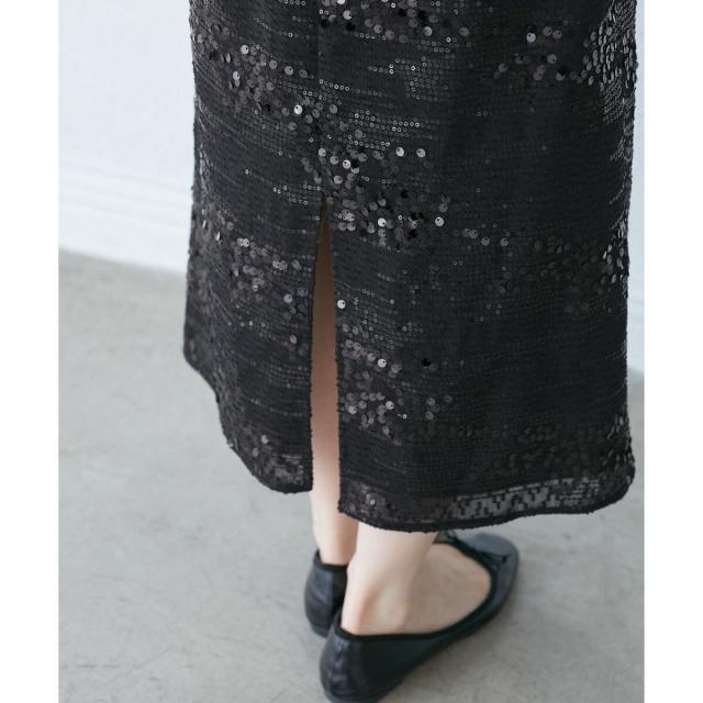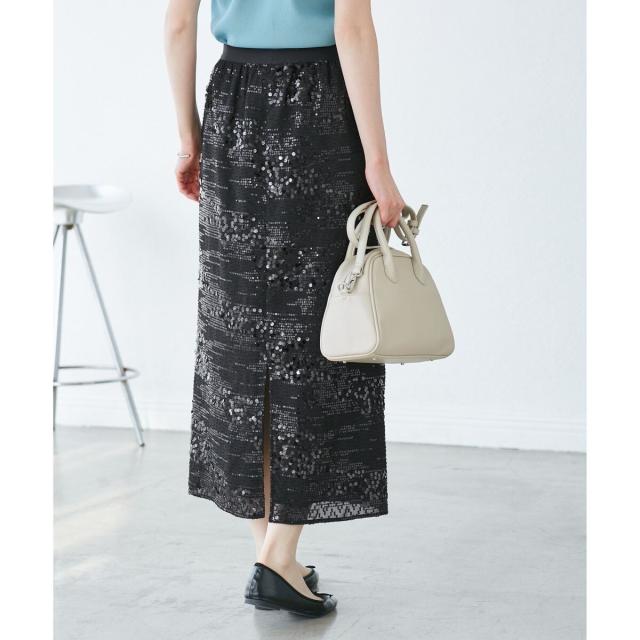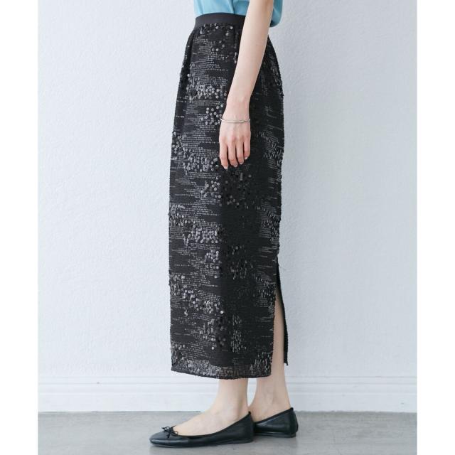 ・きらびやかなスパンコール素材を用いたアイラインスカート。